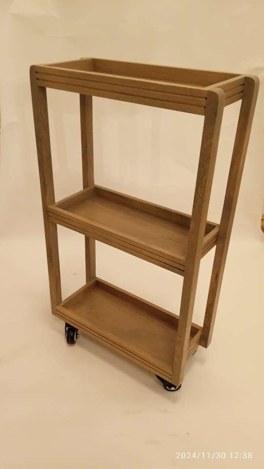 รถเข็นเก็บของไม้แบบมีล้อ 3 ชั้น ชั้นวางของอเนกประสงค์เคลื่อนที่ได้ พร้อมล้อ ชั้นวางของไม้สไตล์เรียบง่ายสำหรับห้องครัว ห้องน้ำ และบ้าน