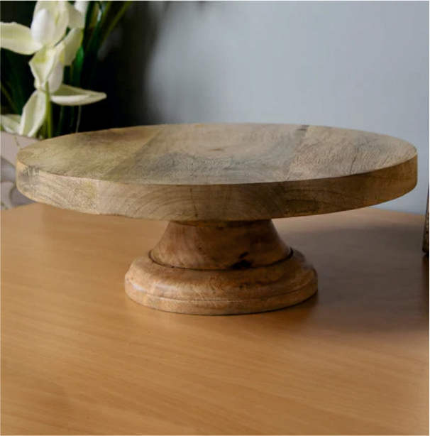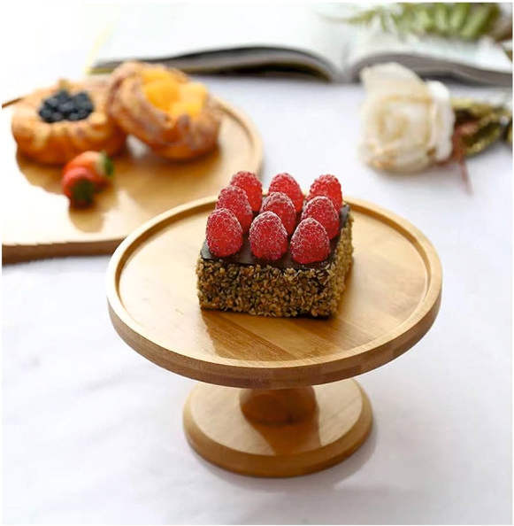 แท่นวางเค้กไม้ทรงกลมสีน้ำตาลเรียบง่ายสำหรับจัดแสดงสินค้ามาใหม่