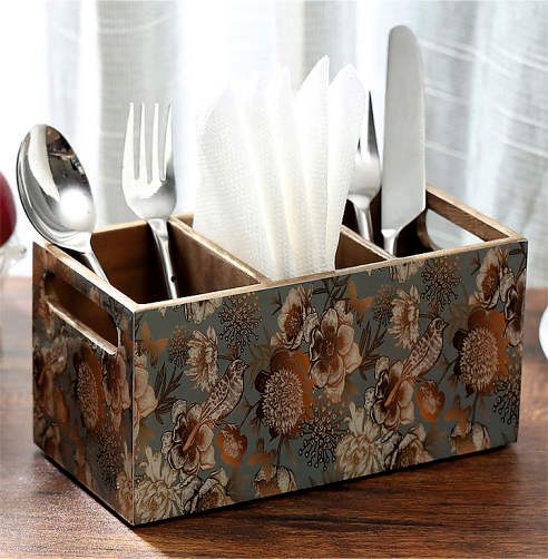 ที่ใส่มีดไม้สามส่วนสำหรับโต๊ะอาหารแบบคลาสสิก