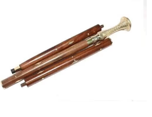 ไม้เท้าทองเหลืองโบราณ CH พร้อมด้ามจับขัดเงา ดีไซน์พับได้ 3 ท่อน สำหรับงานฉลองครบรอบ-พกพาสะดวก