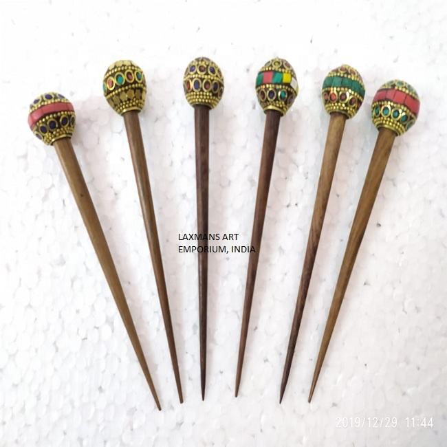 ที่ทำจากไม้ที่มีหินประดับด้วยลูกปัดสำหรับใส่วิกผมออกแบบจากไม้สำหรับผู้หญิงกิ๊บติดผมสไตล์อินเดีย