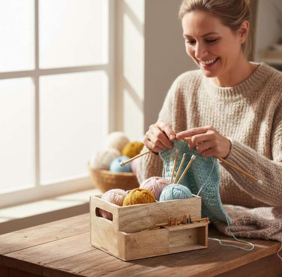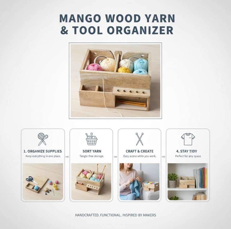 กล่องเก็บไหมพรมไม้ ถ้วยไหมพรมไม้ กล่องเก็บไหมพรมสำหรับถักไหมพรม ผลิตในอินเดีย ที่ม้วนไหมพรมไม้