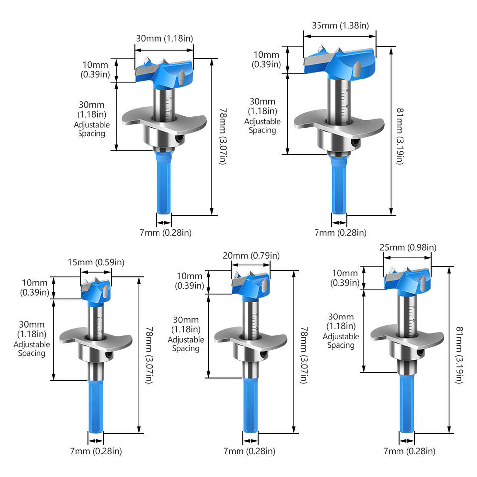 ชุดดอกสว่านเจาะรูงานไม้ 5 ชิ้น ทำจากทังสเตนคาร์ไบด์อัลลอยด์สตีล สำหรับงานเจาะตำแหน่งแม่นยำ ใช้กับบานพับตู้