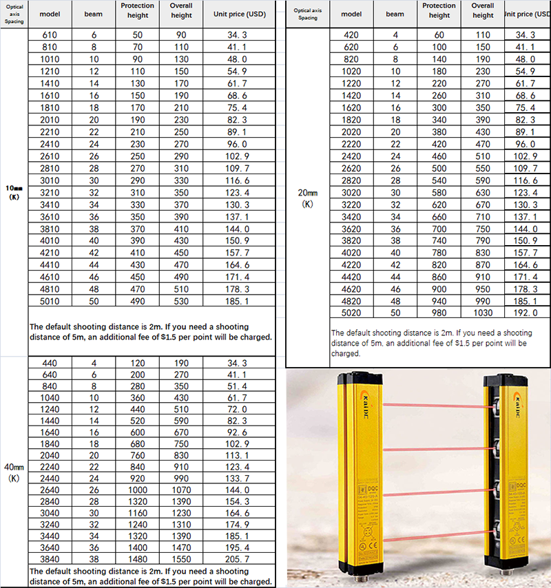 ม่านแสงนิรภัยสำหรับเครื่องจักรงานไม้พร้อมอุปกรณ์ป้องกันมือ รุ่น K1420