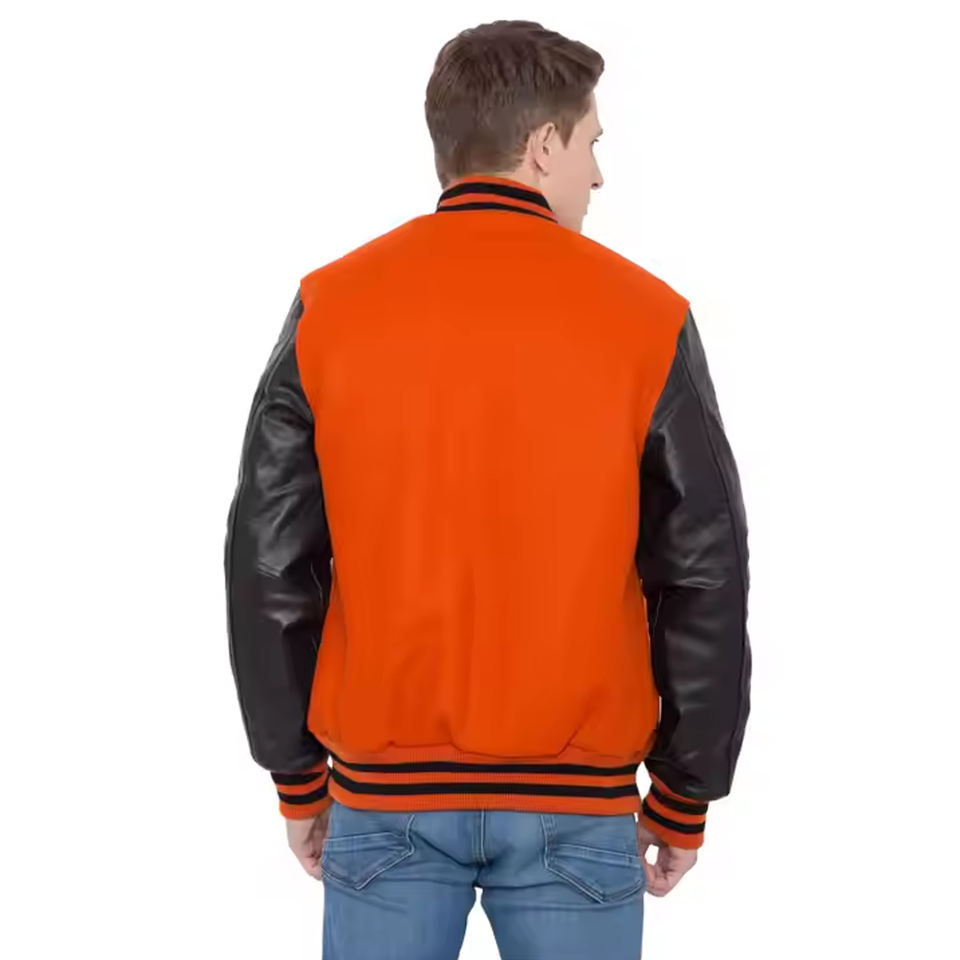 เสื้อแจ็กเก็ตขนสัตว์สีดำพิมพ์ลายโลโก้ได้ตามต้องการแขนหนังวัวแท้คอตั้งลายฤดูหนาว