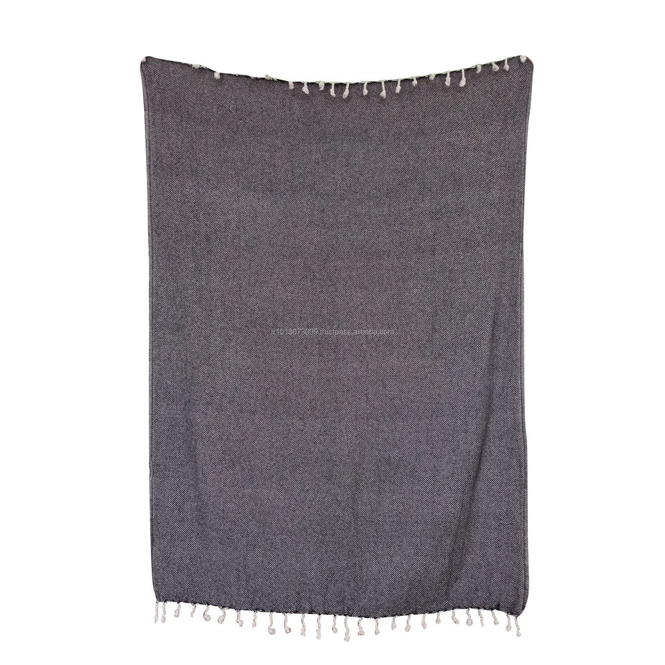 ผ้าขนสัตว์ผ้าฝ้ายผสมผ้าขนหนูตุรกีผ้าห่มชายหาด Pestemal Hammam สีดำ Hamam ขายส่งผ้าห่มและผ้าห่มสำหรับฤดูหนาว