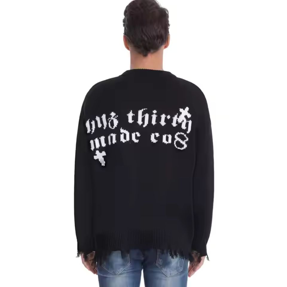 เสื้อสเวตเตอร์ไหมพรมถักลายแจ็คการ์ดลำลองสำหรับผู้ชาย เสื้อสเวตเตอร์ผู้ชายแบบสวม แขนยาว ผ้าถักเนื้อนุ่ม อุ่นสบาย