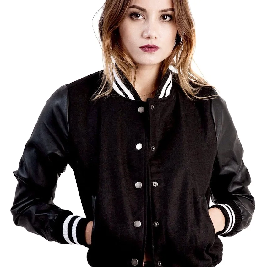 แจ็กเก็ตผู้หญิงหนังขนสัตว์แจ็กเก็ตเลตเตอร์แมนแบบไม่มีลายออกแบบได้ตามที่ต้องการ