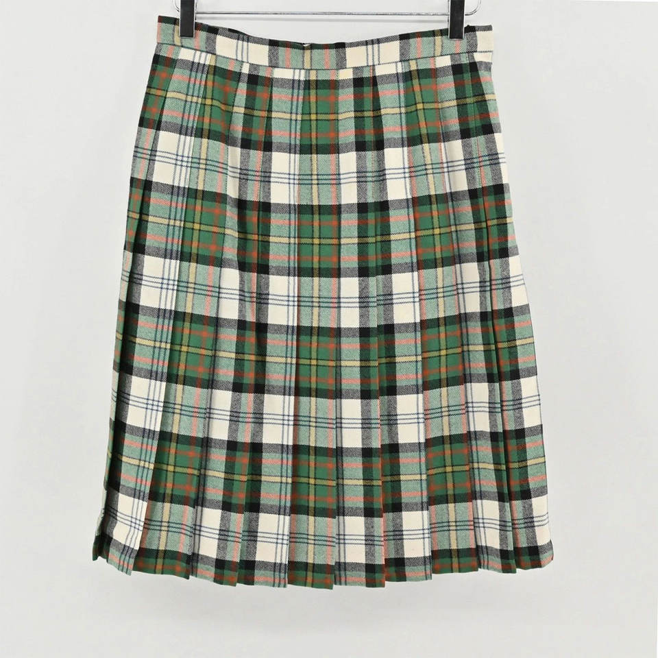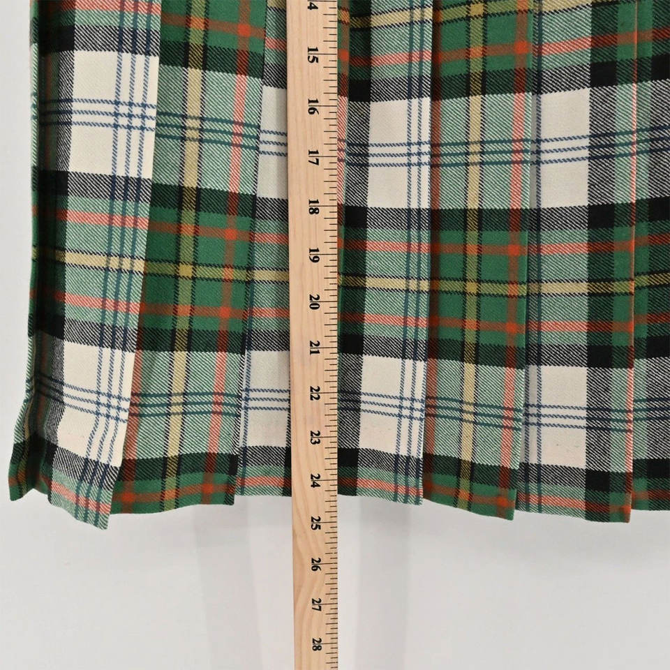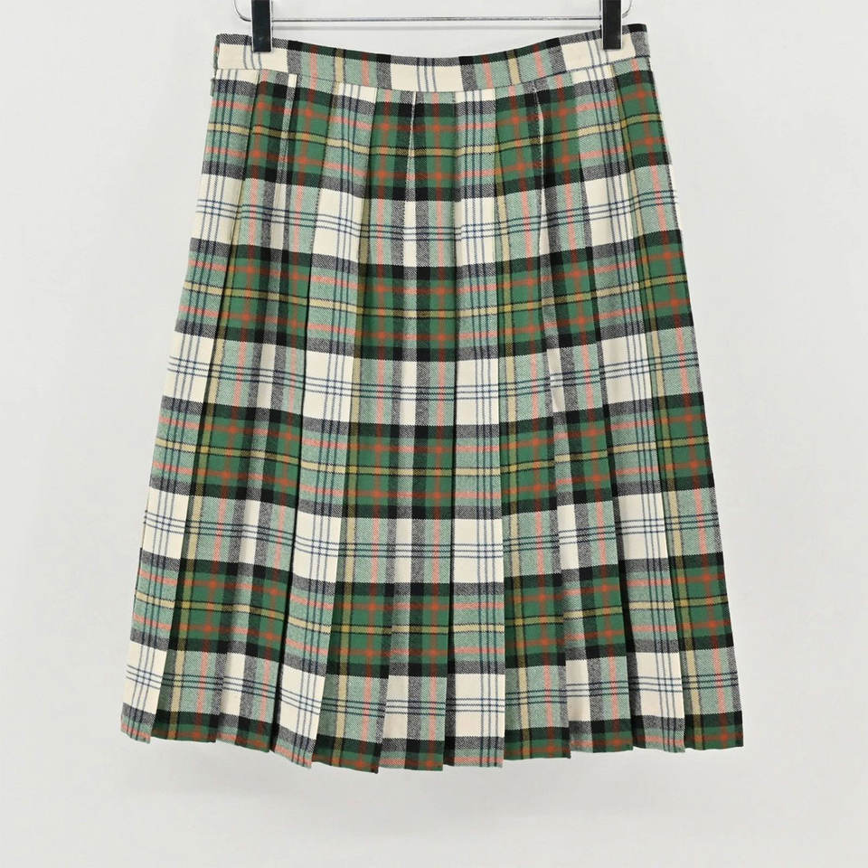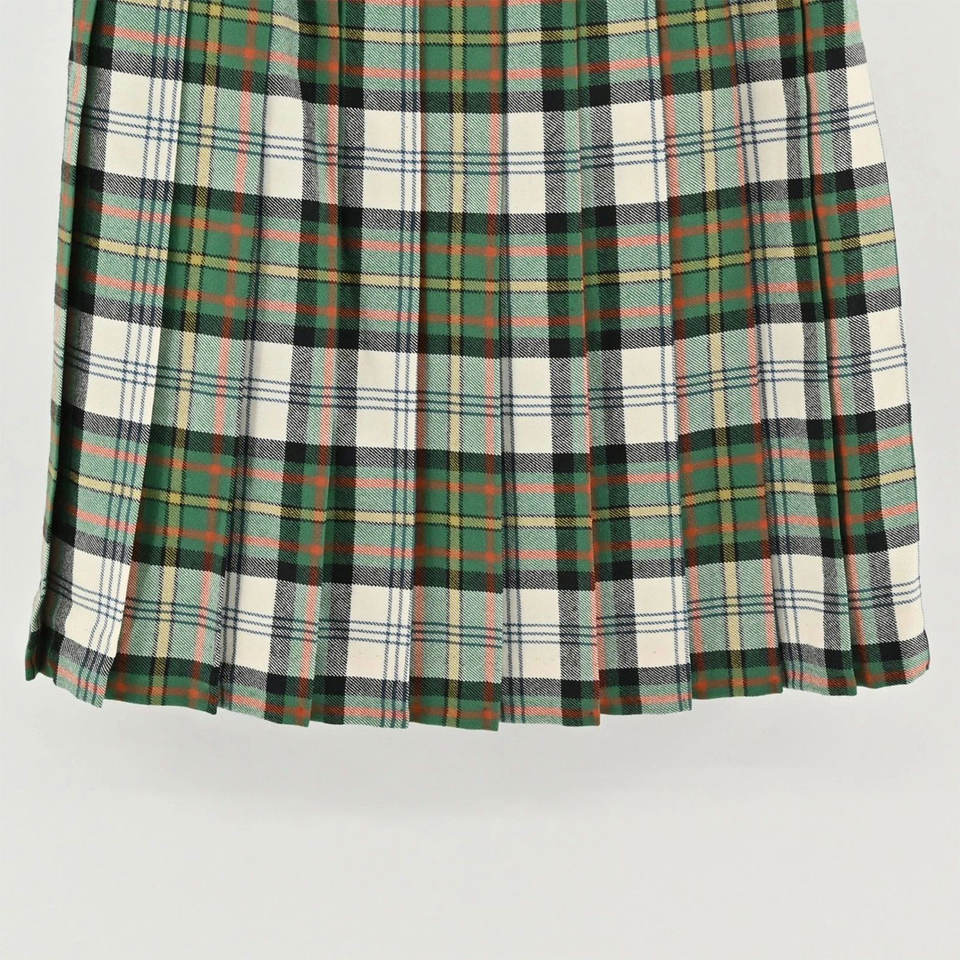 กระโปรงผ้าวูลลายสก็อตสีเขียวแบบจีบยาวสำหรับผู้หญิง รุ่น 2026