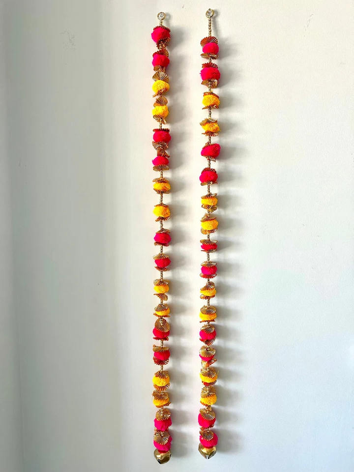 ขนสัตว์ Pom Pom ลูกปัดระฆังสําหรับงานแต่งงานตกแต่งพวงมาลัยสําหรับเทศกาลฉากหลัง Haldi Mehandi Sangeet ตกแต่ง