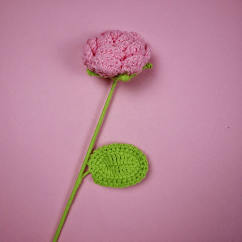 ช่อกุหลาบประดิษฐ์ทำจากเส้นด้ายขนสัตว์ก้านกุหลาบถักโครเชต์