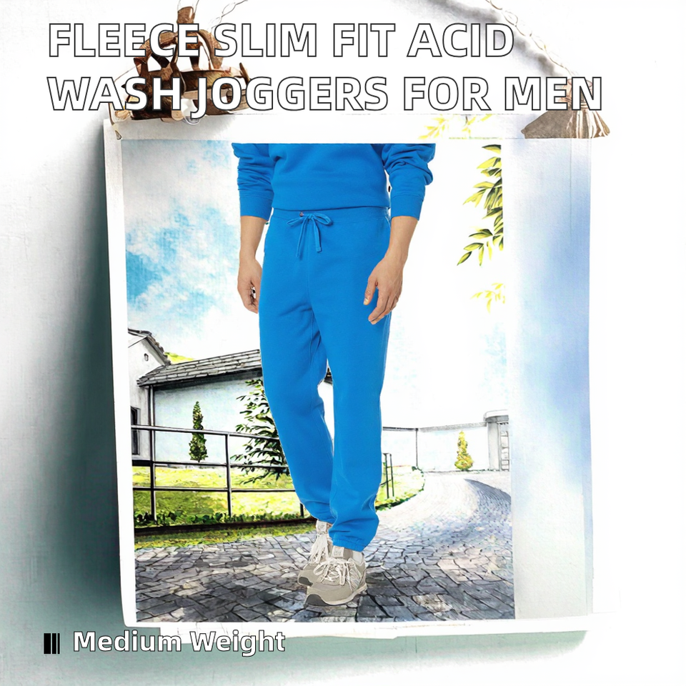 กางเกงวอร์มผ้าวูลฟลีซทรงสลิมฟิต ซักแบบสโนว์วอช เอวยางยืด สไตล์ไฮสตรีท รับทำโลโก้ตามสั่ง บริการ OEM สำหรับผู้ชาย