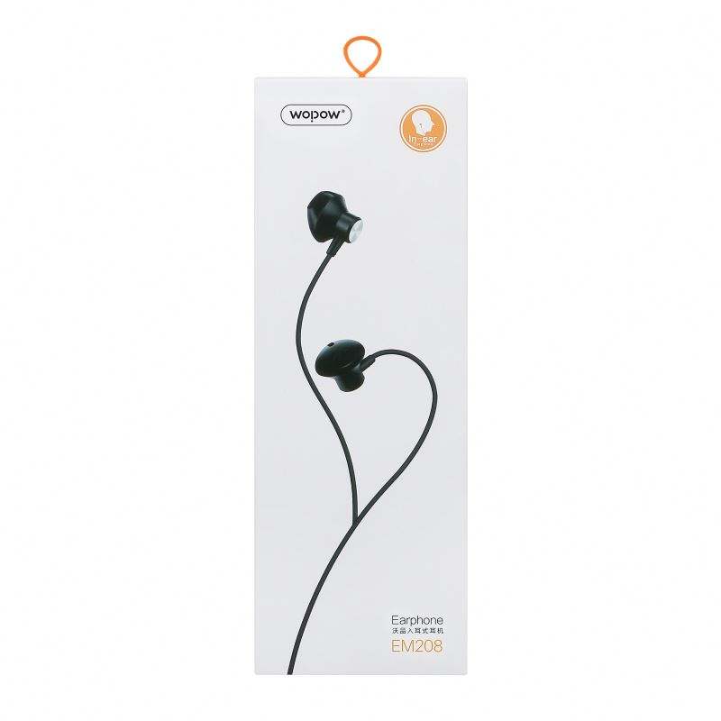 Wopow หูฟัง EM208สีดำแบบครอบหู, เบสหนัก1.2เมตรมีสายไมค์กันน้ำตัดเสียงรบกวนสำหรับ DJ กีฬาและการเดินทางพร้อมใช้งาน