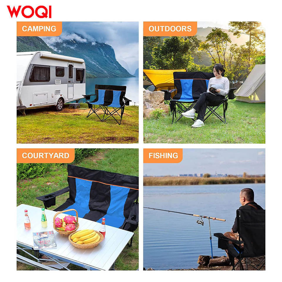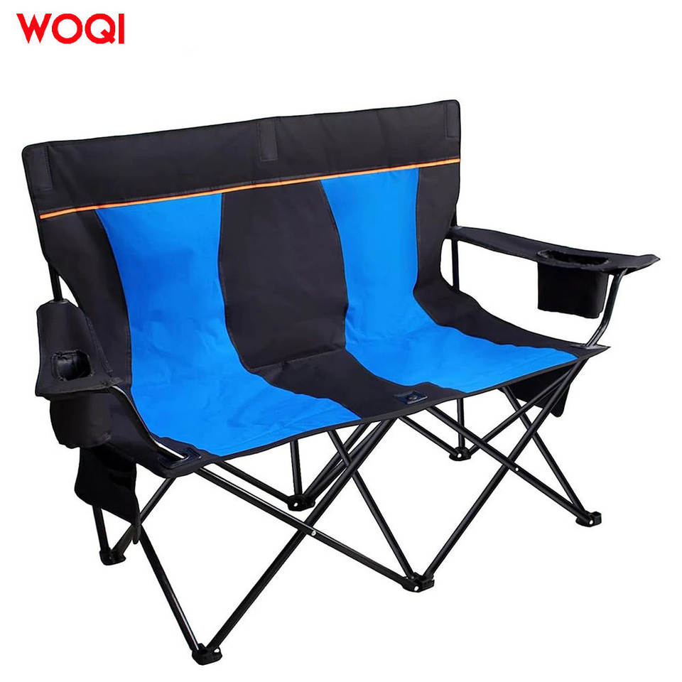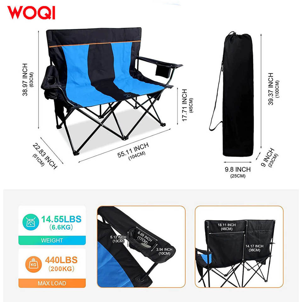 เก้าอี้พับได้ 2 ที่นั่ง Woqi รุ่น Oxford สีน้ำเงินรอยัล สำหรับตั้งแคมป์หรือใช้ในสวน พร้อมที่วางแก้ว