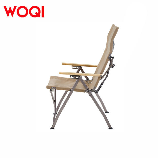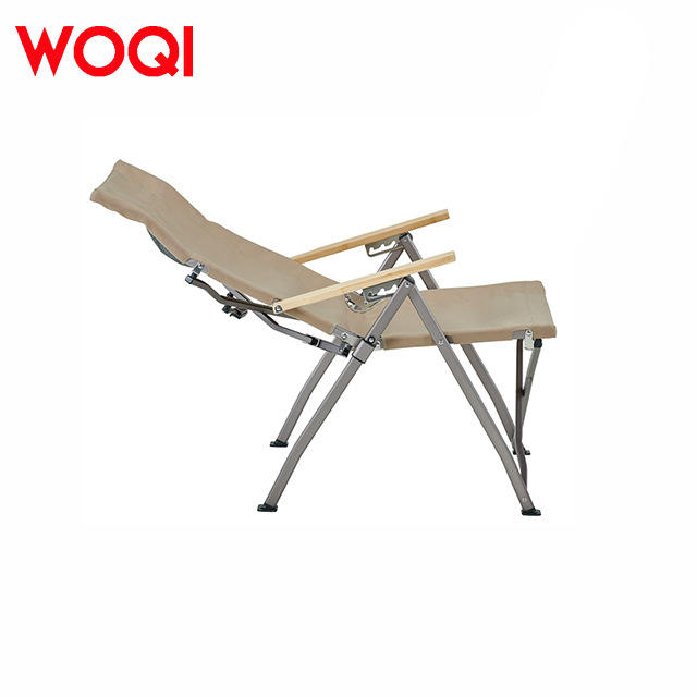 เก้าอี้พับปรับระดับได้ Woqi โครงอะลูมิเนียม ผ้า Oxford พร้อมที่วางแขนไม้ไผ่ สำหรับสวน พกพาสะดวก รับน้ำหนักได้มาก