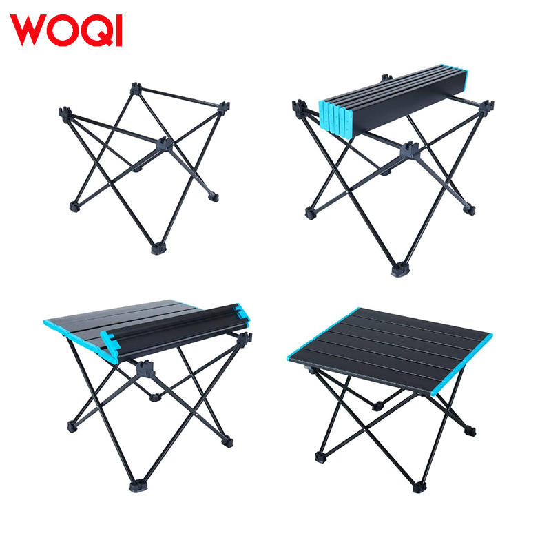 โต๊ะพับอลูมิเนียม Woqi สำหรับตั้งแคมป์ ขนาด 56x40.5x46.5 ซม. รูปทรงสี่เหลี่ยมผืนผ้า พกพาสะดวก ฐานแบบไขว้ สีดำ