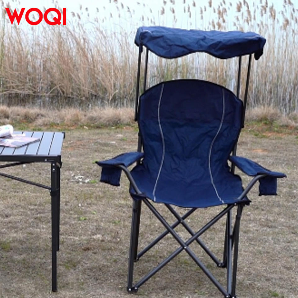 เก้าอี้แคมป์ปิ้ง Woqi พร้อมหลังคาพับได้ โครงอะลูมิเนียม ผ้า Oxford สีน้ำเงิน สำหรับใช้งานกลางแจ้ง สวน และชายหาด