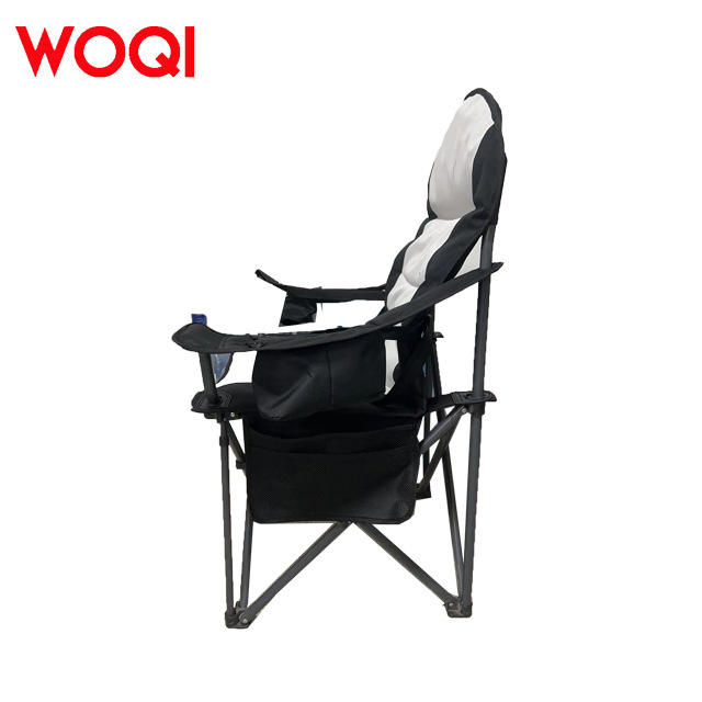เก้าอี้พับแคมป์ปิ้ง Woqi โครงอะลูมิเนียม เก้าอี้เอนหลังสำหรับตกปลา เก้าอี้พกพาสำหรับกิจกรรมกลางแจ้ง พร้อมที่วางแก้วและกระเป๋าเก็บของ