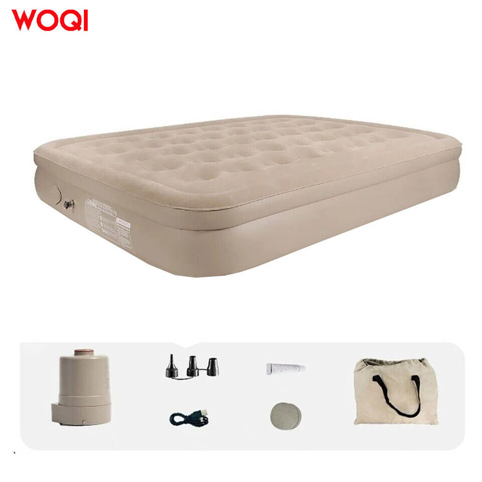 ที่นอนลมคู่ Woqi รับน้ำหนักได้ 150 กก. พร้อมปั๊มในตัว ผ้าสีกากี ใช้ได้ทั้งภายในและภายนอกอาคาร