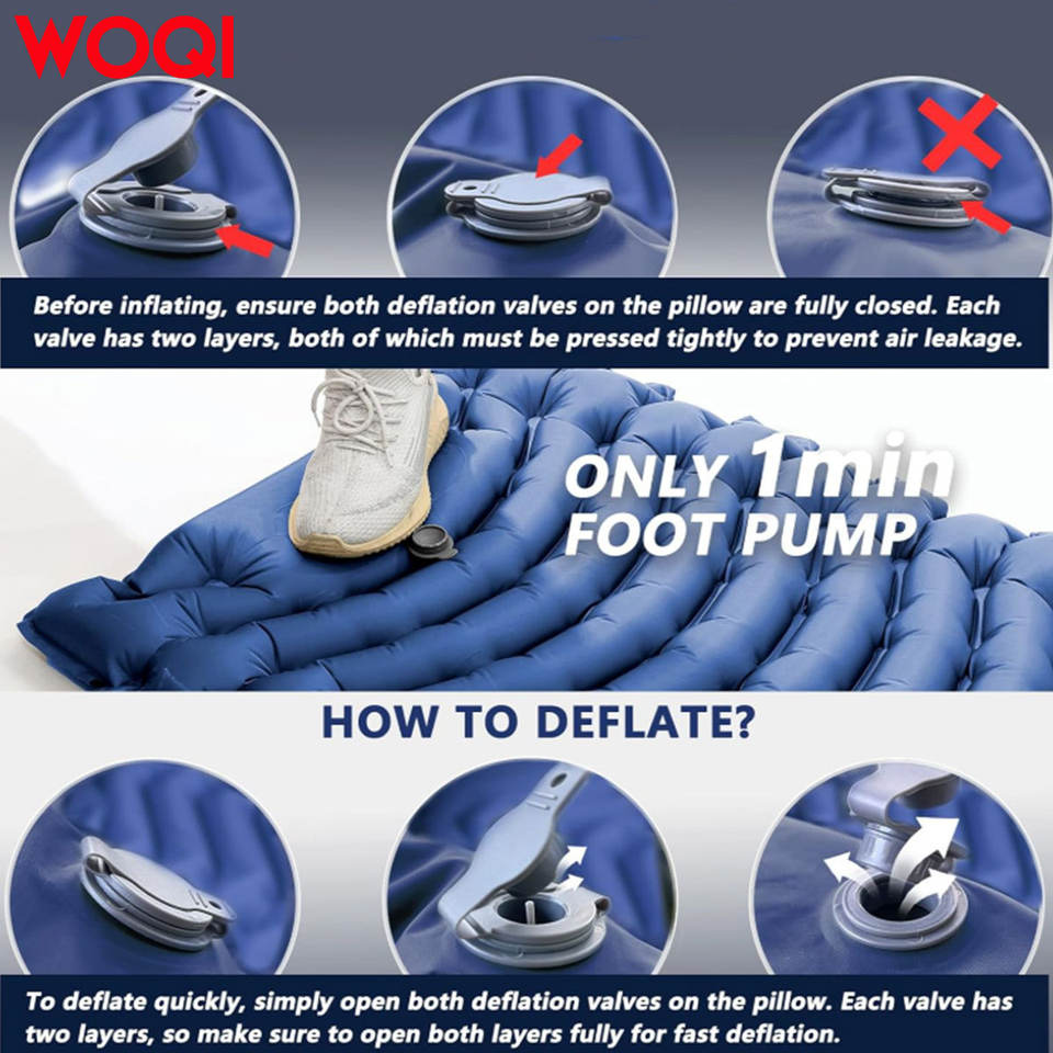 ที่นอนลม Woqi ขนาด 200x130x9 ซม. พร้อมปั๊มในตัว สีฟ้า ที่นอนพับได้สำหรับตั้งแคมป์ สำหรับ 1-2 คน