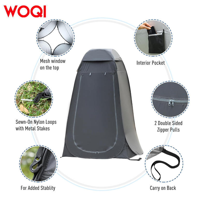 Woqi Emergency Folding Shower Tent 120x120x190cm Quick Setup Single Layer Dark Gray Camping Beach Outdoor Use