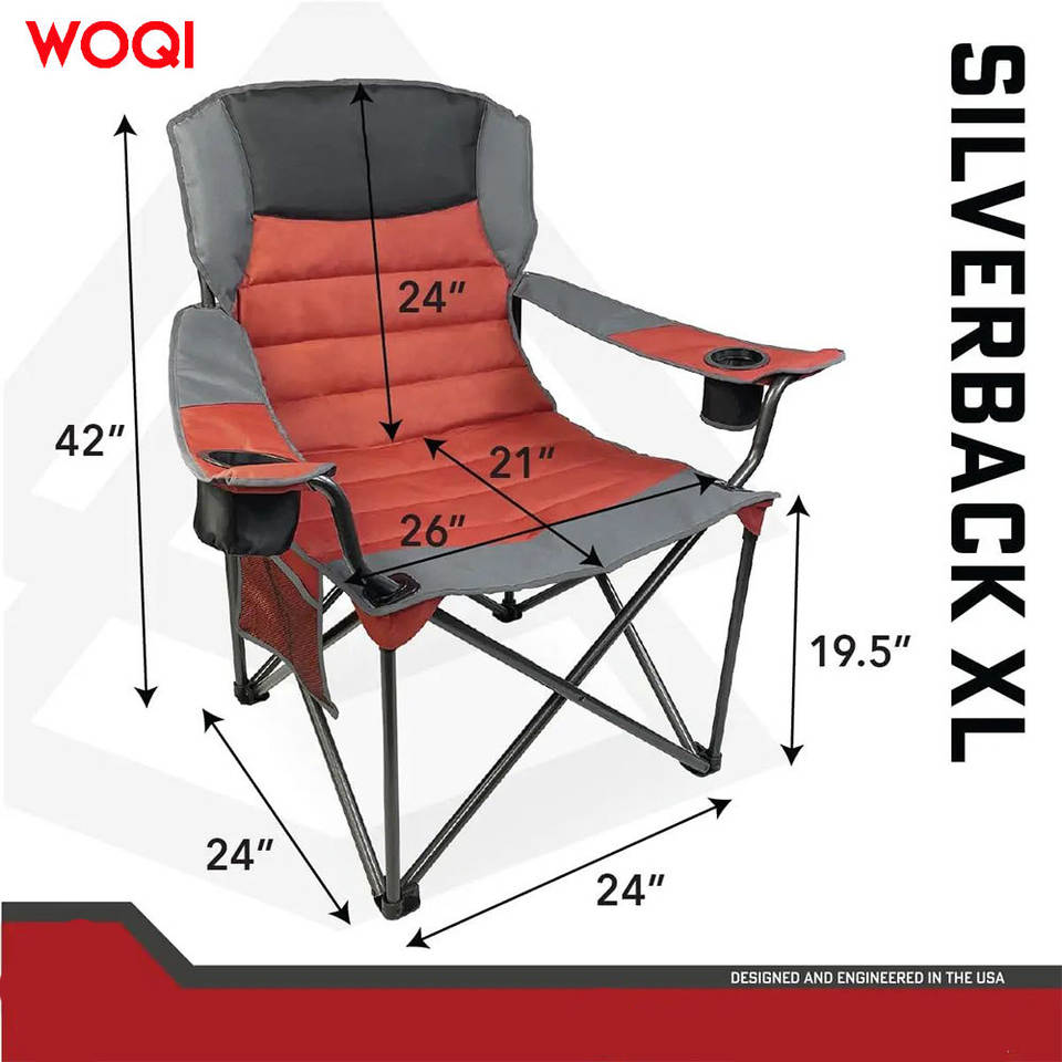 เก้าอี้พับขนาดใหญ่พิเศษ Woqi สำหรับใช้งานกลางแจ้ง พกพาสะดวก ใช้ได้ที่ชายหาด พร้อมที่วางแก้วคู่ สีส้ม