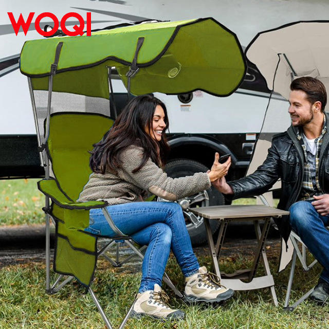 เก้าอี้พับแคมป์ปิ้ง Woqi พร้อมหลังคาพับเก็บได้ โครงอะลูมิเนียม น้ำหนักเบา พกพาสะดวก เก้าอี้สนามกลางแจ้ง ป้องกันรังสียูวี