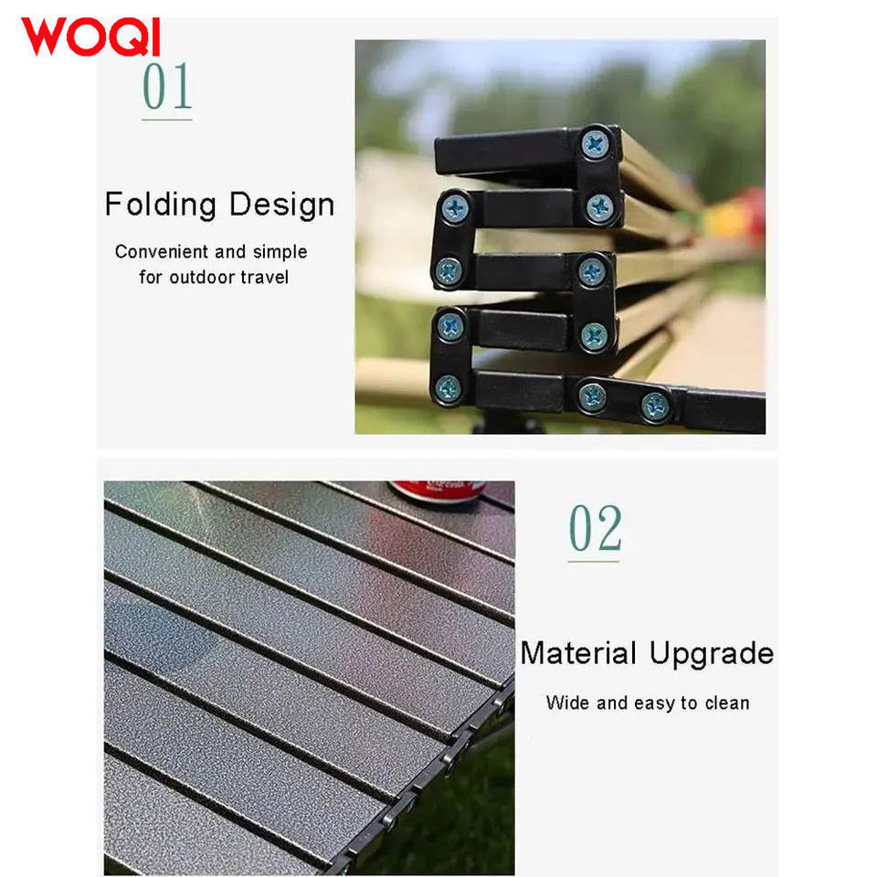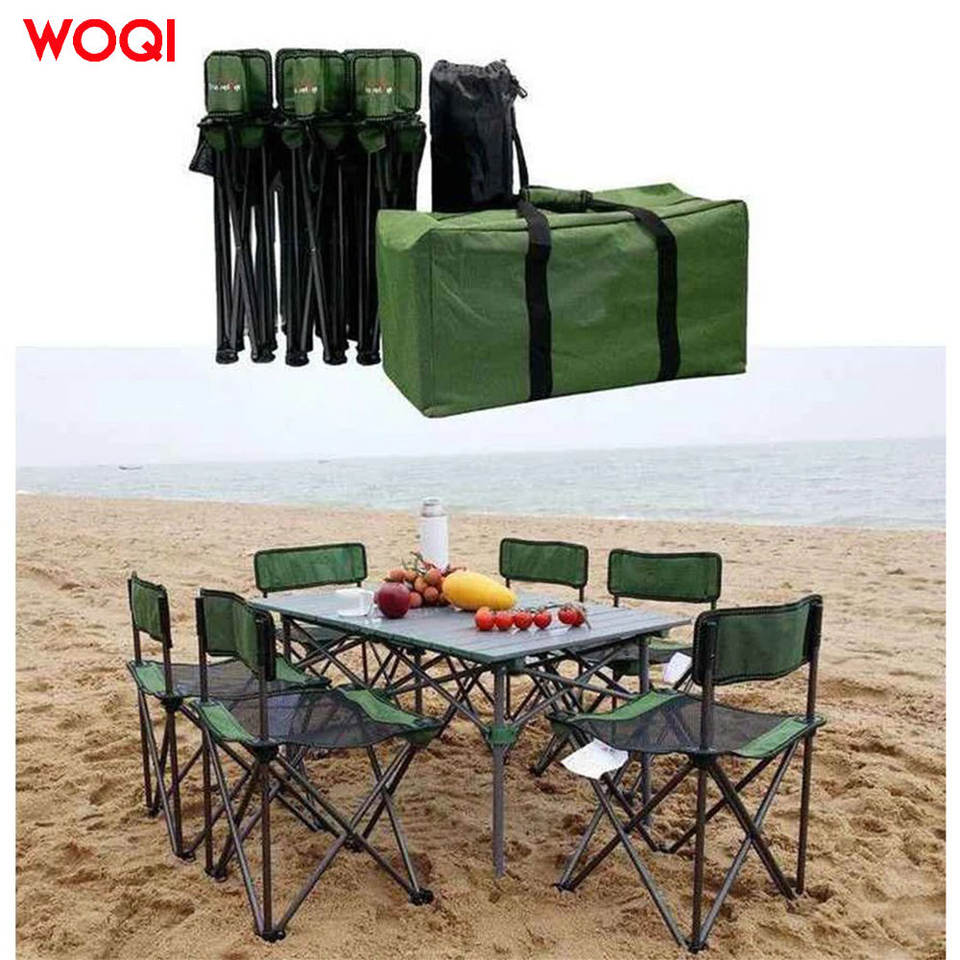 ชุดโต๊ะและเก้าอี้พับได้ Woqi สำหรับกลางแจ้ง 4 ที่นั่ง โครงเหล็ก พกพาสะดวก เหมาะสำหรับตั้งแคมป์ รูปทรงสี่เหลี่ยมผืนผ้า ใช้สำหรับชายหาด เดินทาง และรับประทานอาหาร
