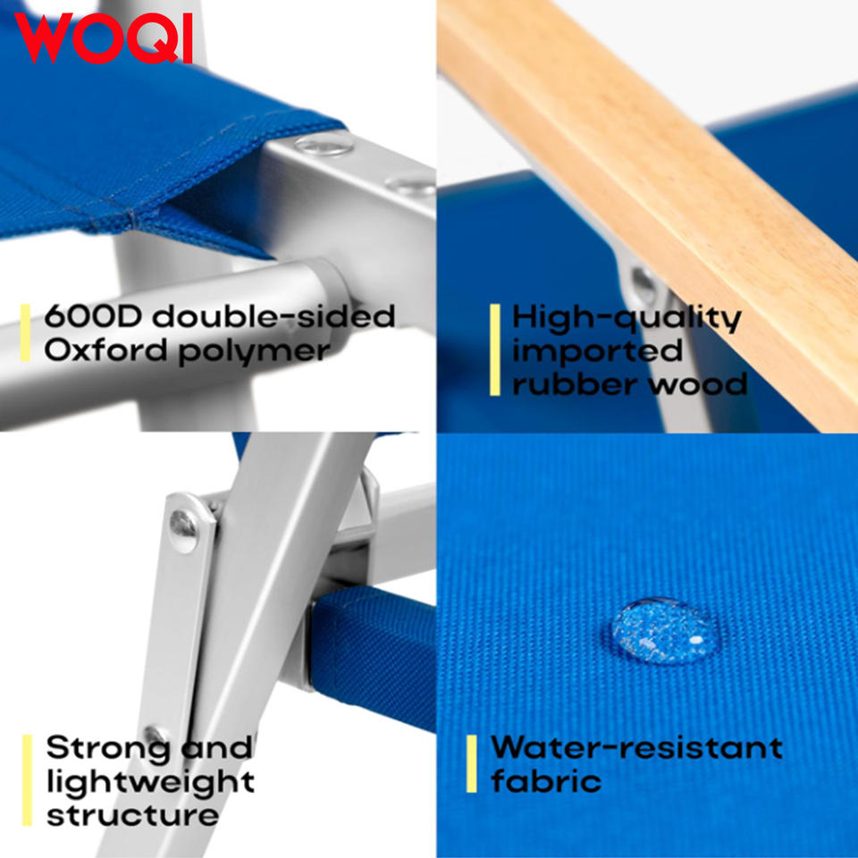 เก้าอี้ชายหาดพับได้ Woqi สีน้ำเงิน พกพาสะดวก น้ำหนักเบา พร้อมที่จับไม้ สำหรับใช้งานกลางแจ้ง