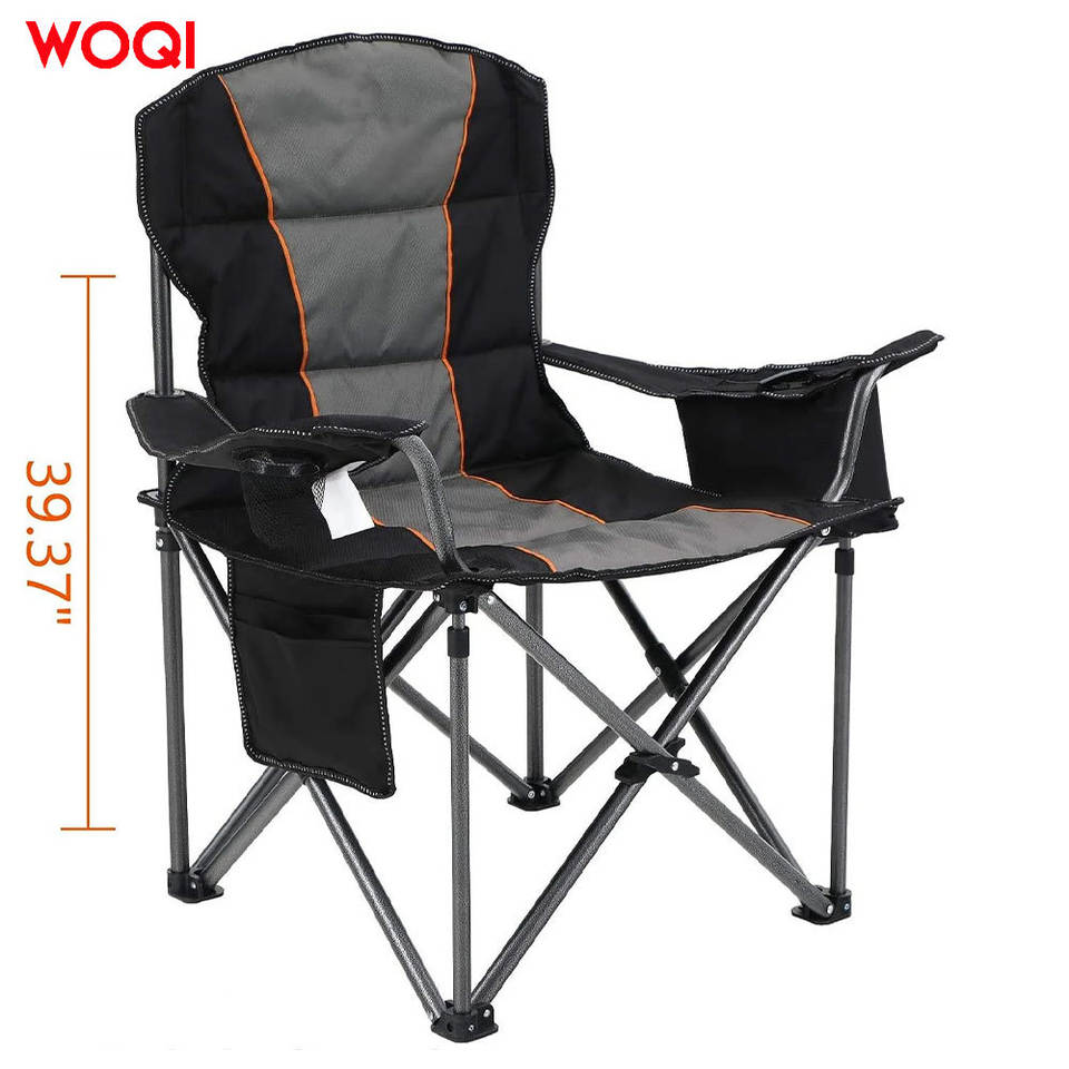 เก้าอี้พับแคมป์ปิ้ง Woqi ขนาด 39.37 นิ้ว สีดำ ผ้า Oxford โครงอะลูมิเนียม เก้าอี้สำหรับสวนกลางแจ้ง