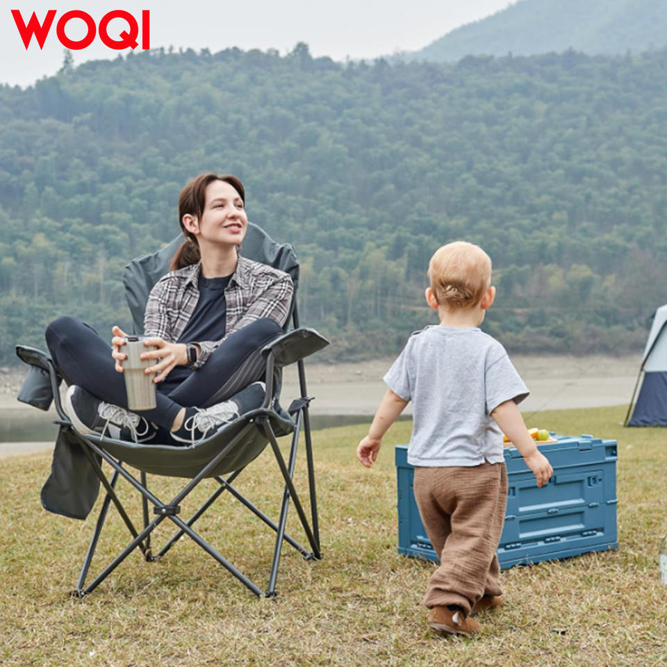 เก้าอี้พับแคมป์ปิ้ง Woqi ขนาด 43 นิ้ว พนักพิงสูง โครงเหล็ก เก้าอี้สนามหญ้ากลางแจ้ง น้ำหนักเบา พกพาสะดวก เก้าอี้สวนสำหรับผู้ใหญ่
