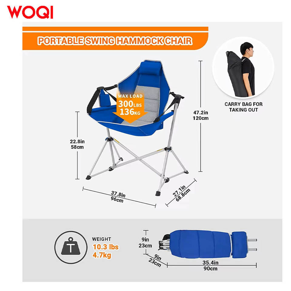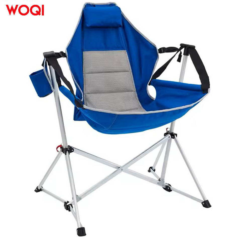 เก้าอี้พับแคมป์ปิ้ง Woqi สีน้ำเงิน โครงอะลูมิเนียม ผ้า Oxford สำหรับใช้งานกลางแจ้ง สวน ชายหาด พร้อมหมอน พกพาสะดวกแบบกระเป๋าเป้