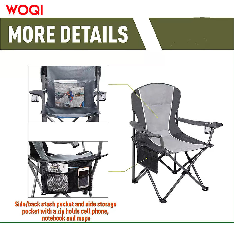 เก้าอี้พับแคมป์ปิ้ง Woqi สีเทา เก้าอี้ชายหาดพกพาสำหรับกิจกรรมกลางแจ้ง พร้อมช่องเก็บของแบบมีฉนวนกันความร้อน เก้าอี้เดินทางน้ำหนักเบา