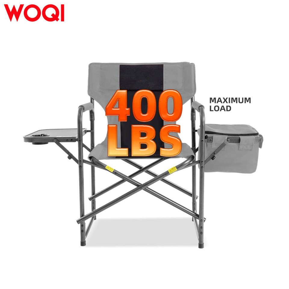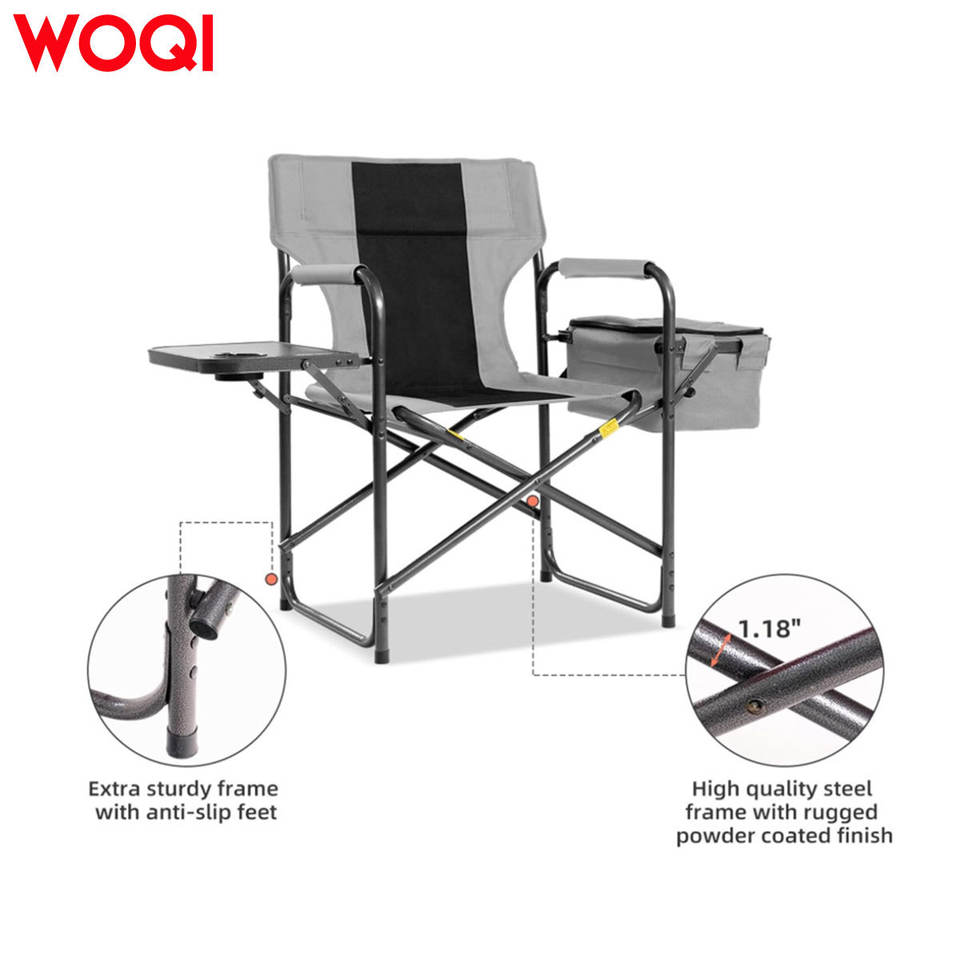 เก้าอี้พับแคมป์ปิ้ง Woqi พร้อมโต๊ะข้างและกระเป๋าเก็บความเย็น โครงอะลูมิเนียม ผ้า Oxford เก้าอี้สำหรับสวนกลางแจ้ง