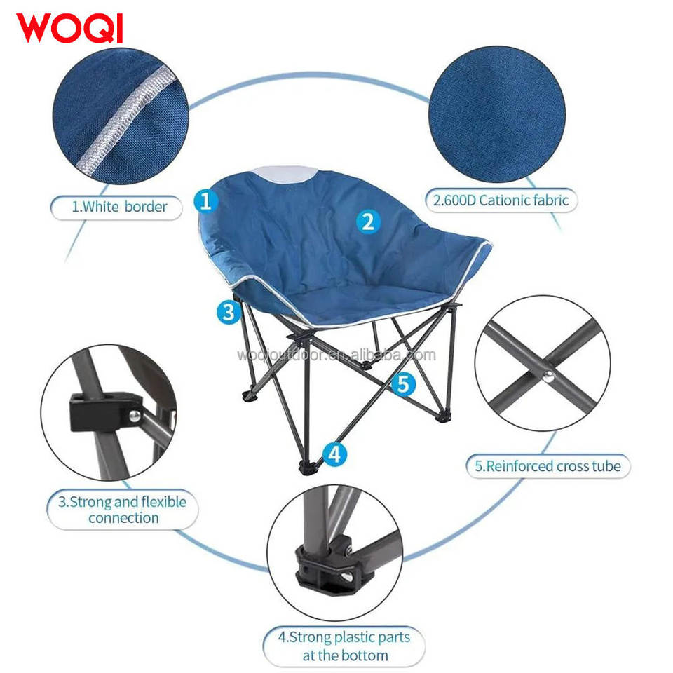 เก้าอี้พับ Woqi ขนาด 22x22x35.4 นิ้ว โครงอะลูมิเนียม ผ้า Oxford สีฟ้าทะเล เก้าอี้สนามพกพา แข็งแรง ทนทาน