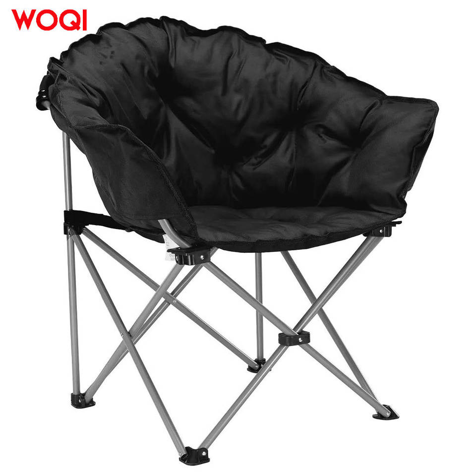 เก้าอี้พับ Woqi อลูมิเนียมทรงกลม สีดำ สำหรับตั้งแคมป์กลางแจ้งและสวน พร้อมเบาะนุ่ม