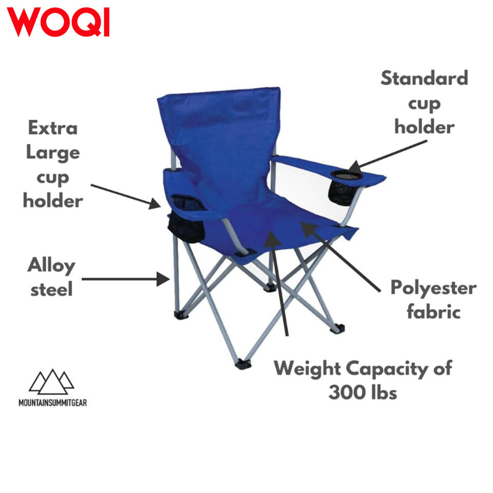 เก้าอี้พับ Woqi สำหรับตั้งแคมป์กลางแจ้ง สีน้ำเงิน ผ้า Oxford รูปทรงสี่เหลี่ยมผืนผ้า รับน้ำหนักได้ 110 กก. ดีไซน์พับเก็บได้