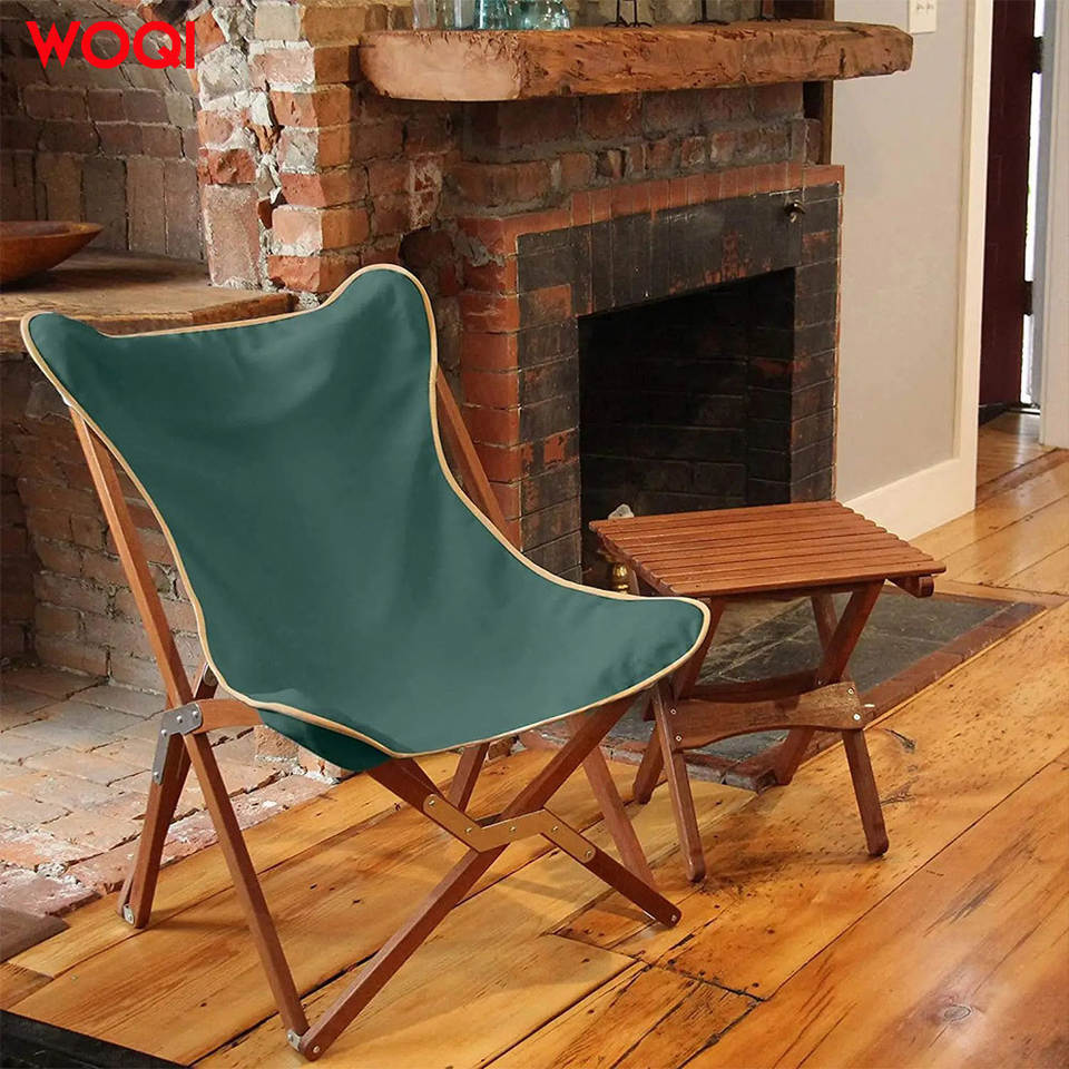 เก้าอี้พับ Woqi สีเขียวพีค็อก ผ้า Oxford โครงไม้เนื้อแข็ง เก้าอี้สวน ดีไซน์เรียบง่าย เก้าอี้พักผ่อนสำหรับตั้งแคมป์กลางแจ้ง