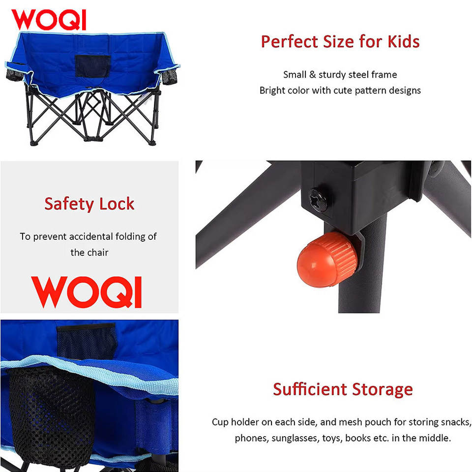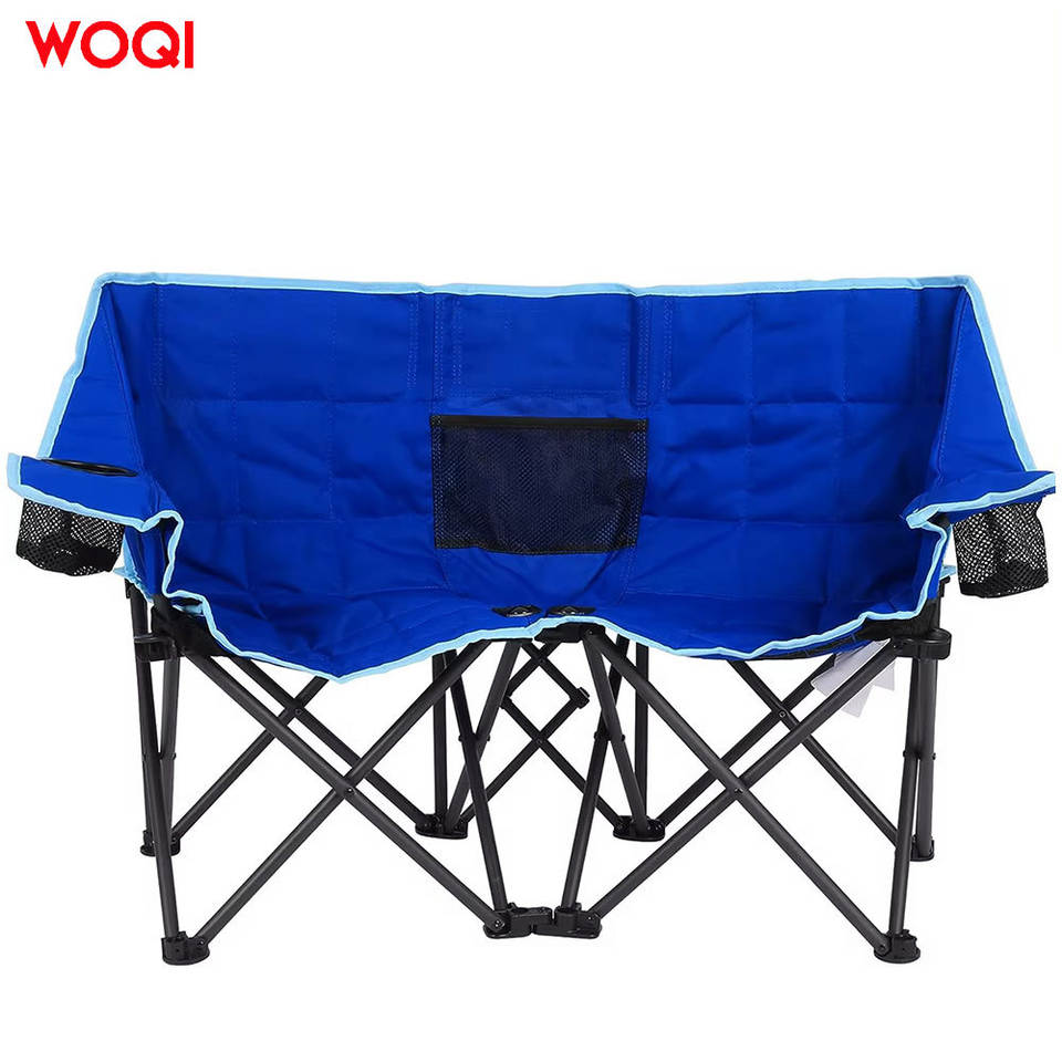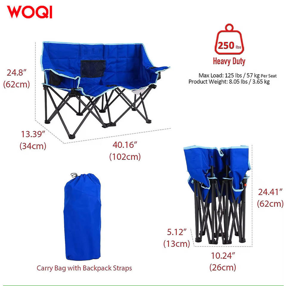 Woqi Folding Double Camping Chair Blue Oxford Cloth Aluminum Frame Outdoor Garden Beach Picnic Use