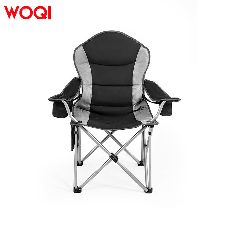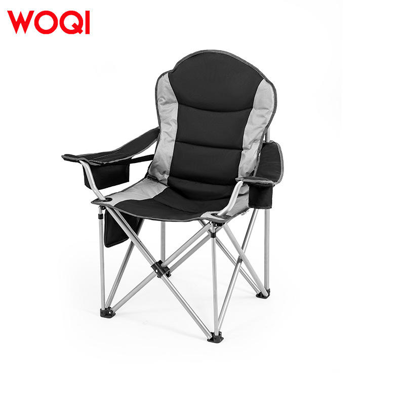 เก้าอี้สนามพับได้ Woqi ขนาด 56x56x108 ซม. เก้าอี้ตกปลาพกพาสำหรับกิจกรรมกลางแจ้ง พร้อมกระเป๋าเก็บความเย็น สีดำ ทำจากโพลีเอสเตอร์ 600D
