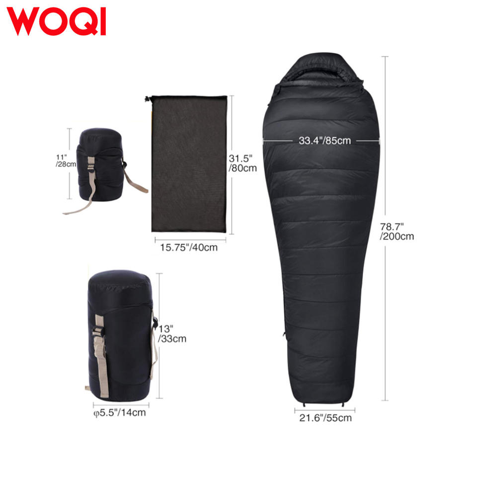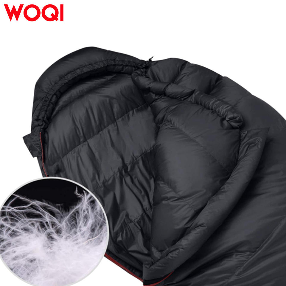 ถุงนอน Woqi Mummy 3 ฤดู ไนลอน ขนเป็ด สีดำ สำหรับผู้ใหญ่ เดินป่า ตั้งแคมป์ ระบายอากาศได้ดี ความยาวมาตรฐาน