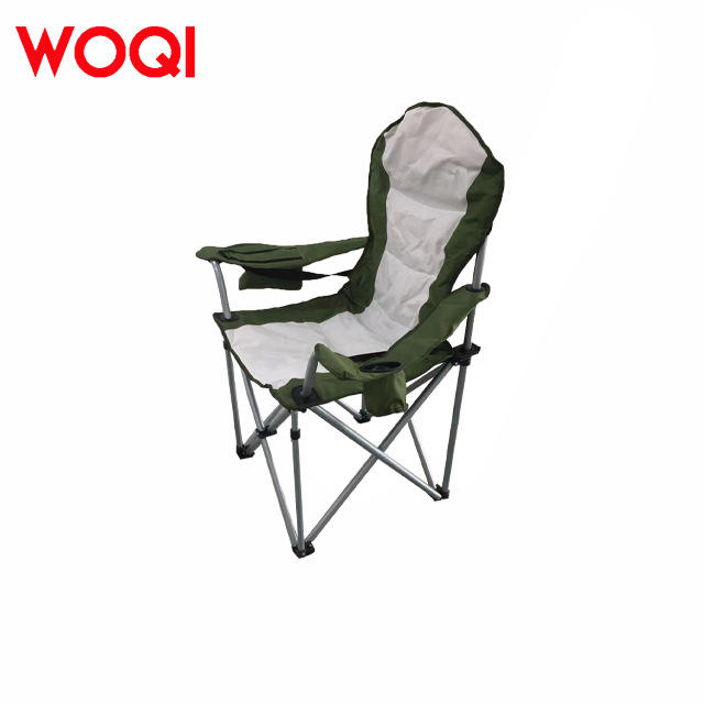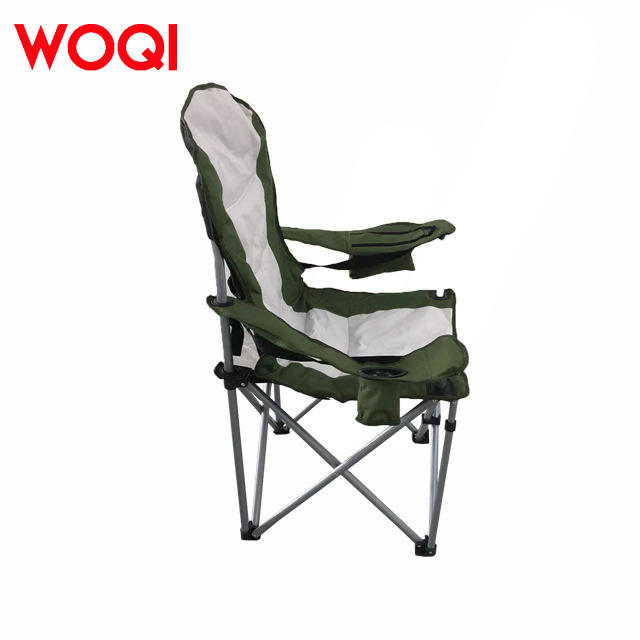 Woqi เก้าอี้ชายหาดกลางแจ้งพับได้แบบพกพากรอบเหล็กเบาะเก้าอี้ตกปลามีที่พักแขนสีเขียวปรับแต่งได้