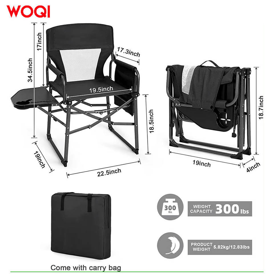 เก้าอี้แคมป์ปิ้งพับได้ Woqi โครงอะลูมิเนียม ผ้า Oxford สีดำ สำหรับสวน