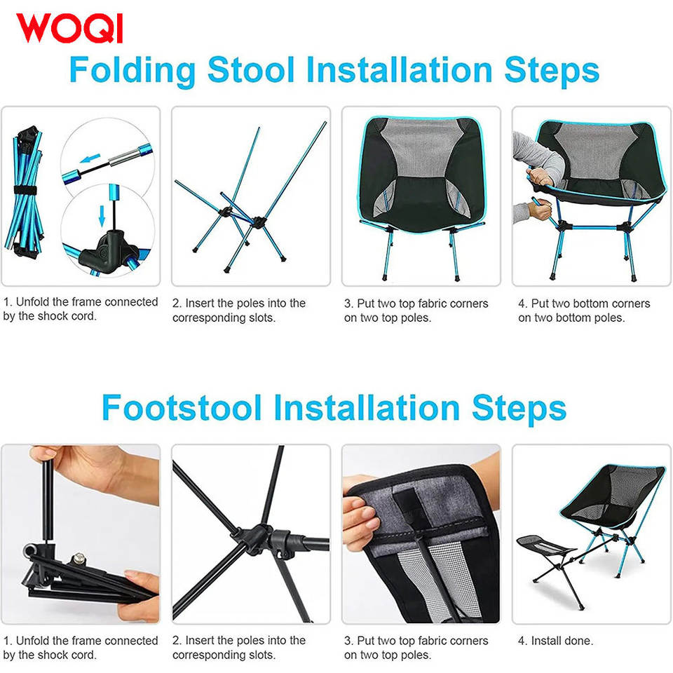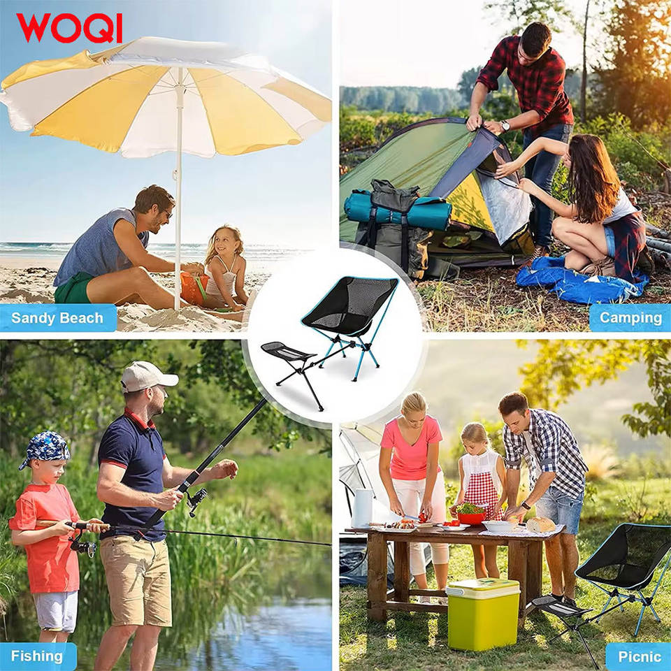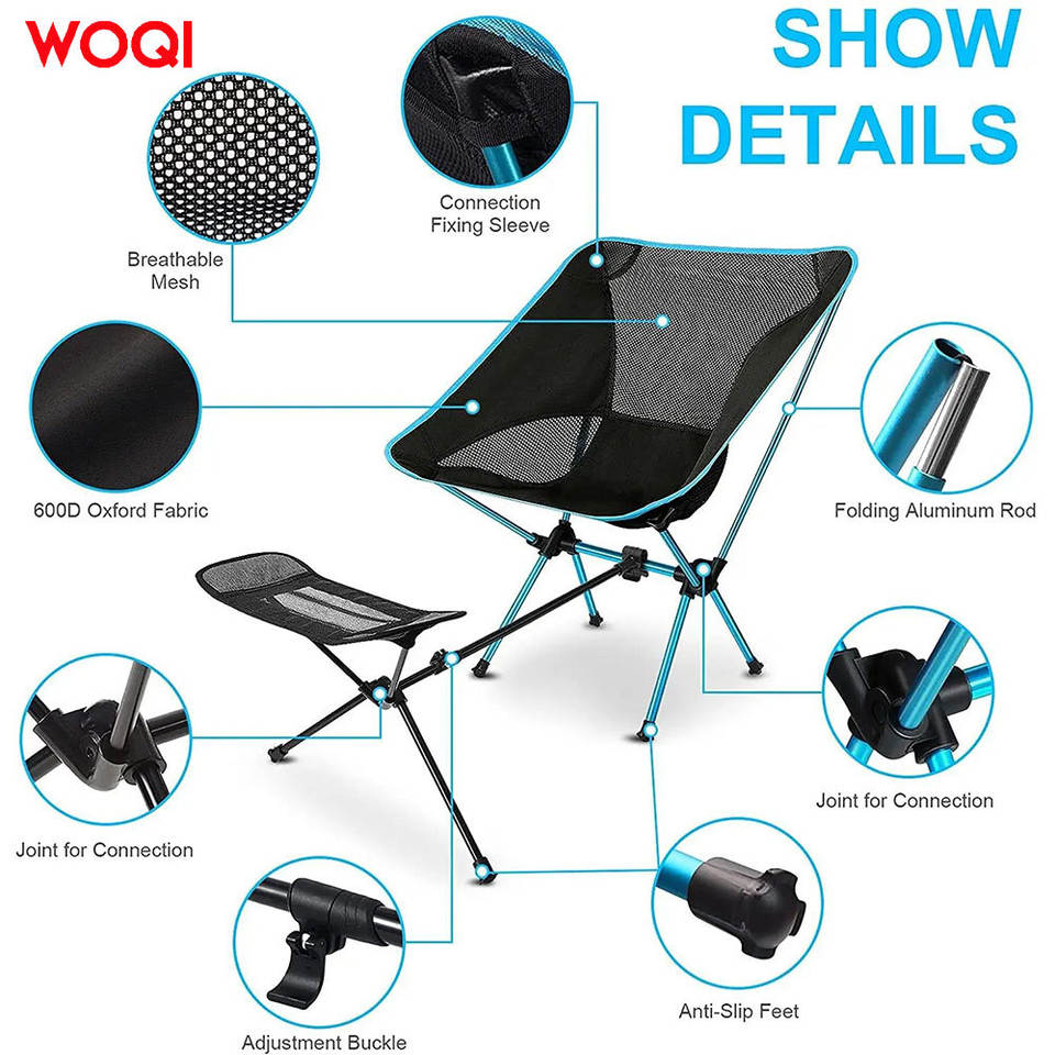 เก้าอี้แคมป์ปิ้งพับได้ Woqi สีน้ำเงิน พร้อมที่พักเท้า ดีไซน์กะทัดรัด น้ำหนักเบา เหมาะสำหรับชายหาด