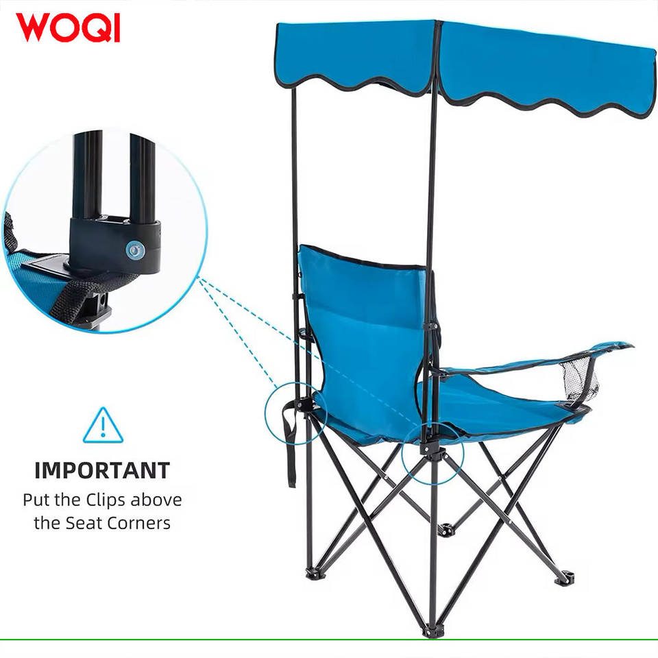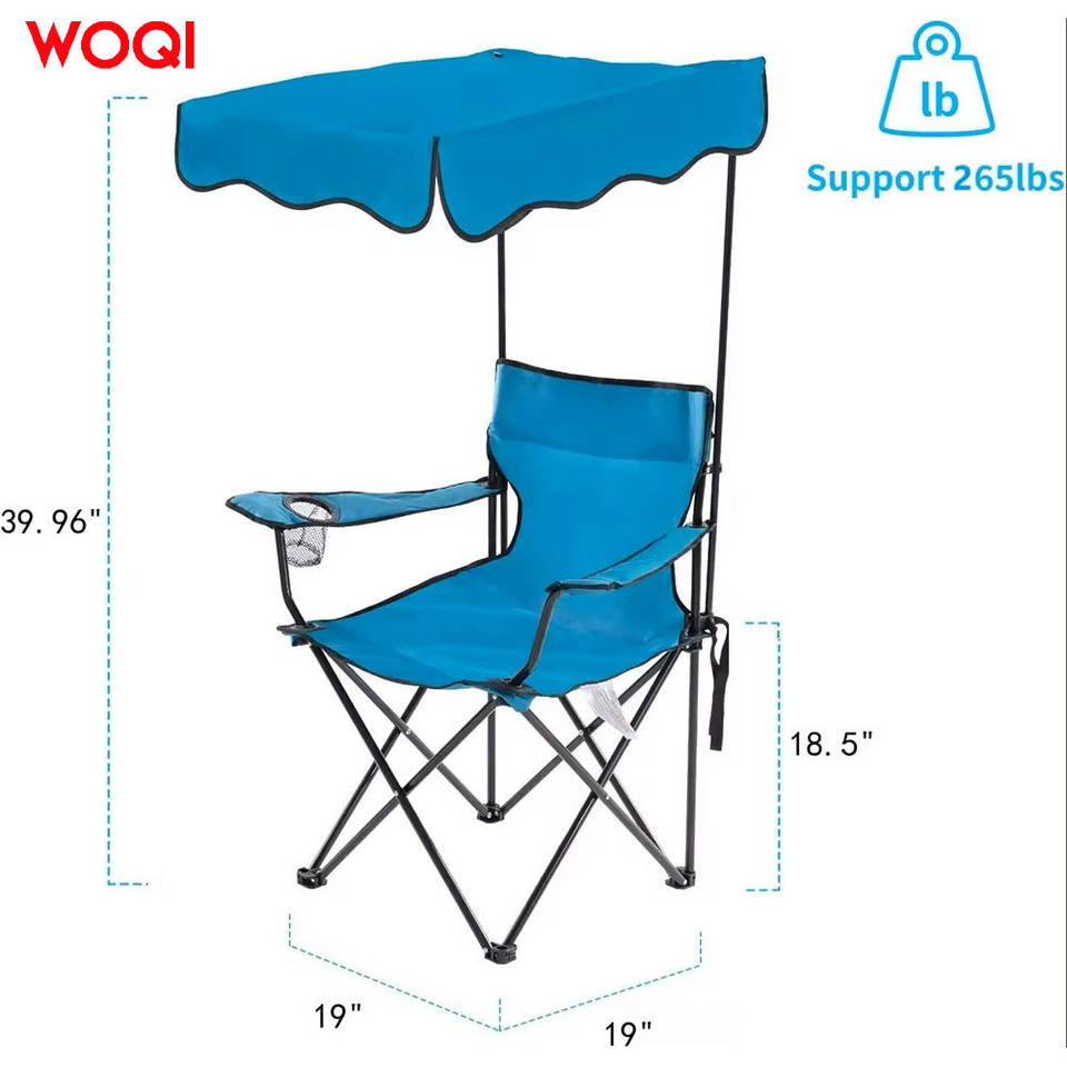 เก้าอี้แคมป์ปิ้งพับได้ Woqi สีฟ้า พร้อมหลังคาบังแดด พกพาสะดวก ใช้ได้ทั้งชายหาดและกลางแจ้ง ทนทาน น้ำหนักเบา