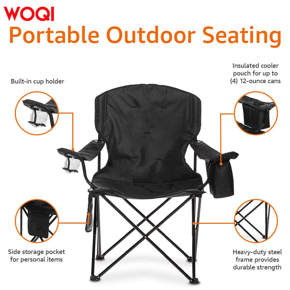 Woqi Outdoor Camping Folding Chair Aluminum Frame Oxford Cloth Portable Garden Chair with Ice Pack Storage