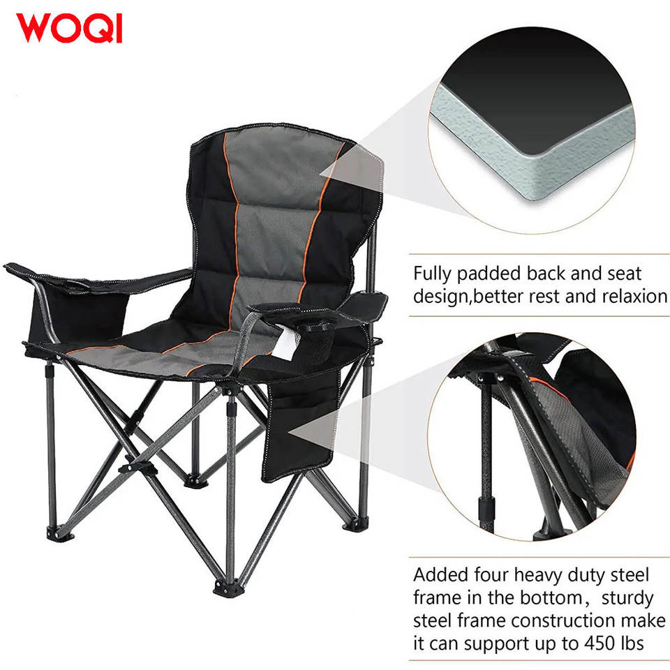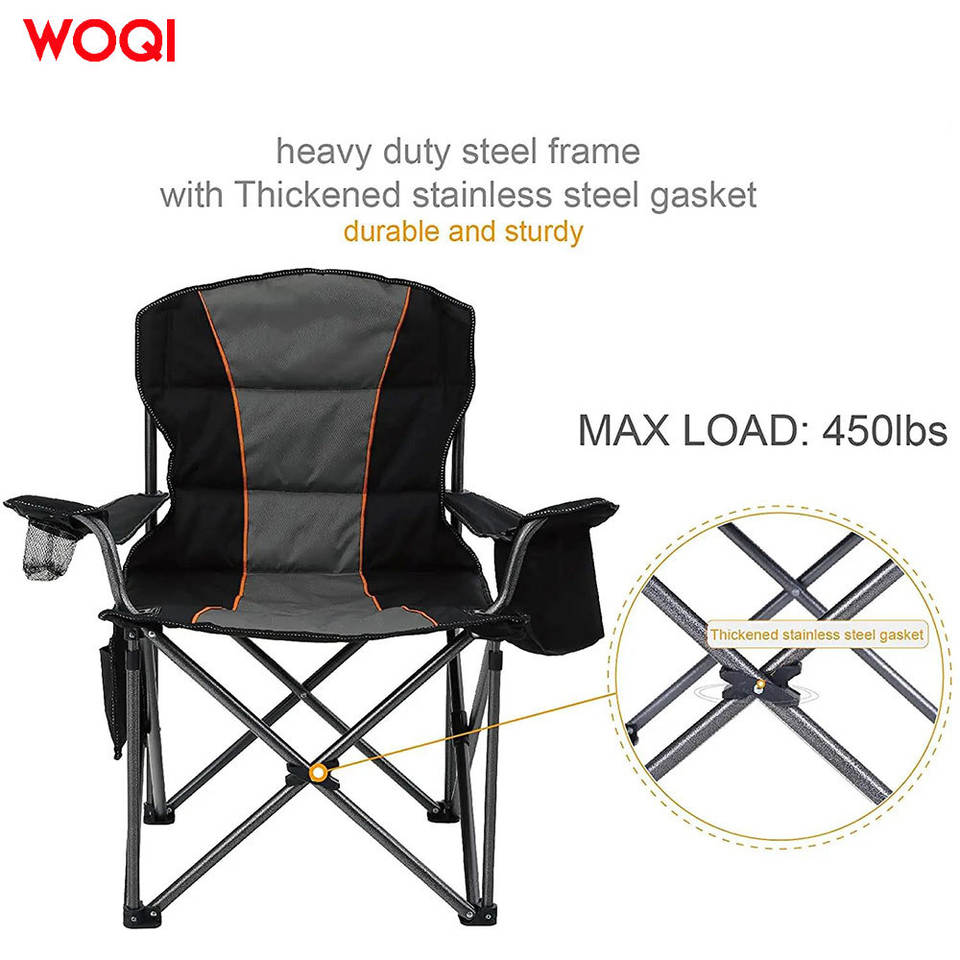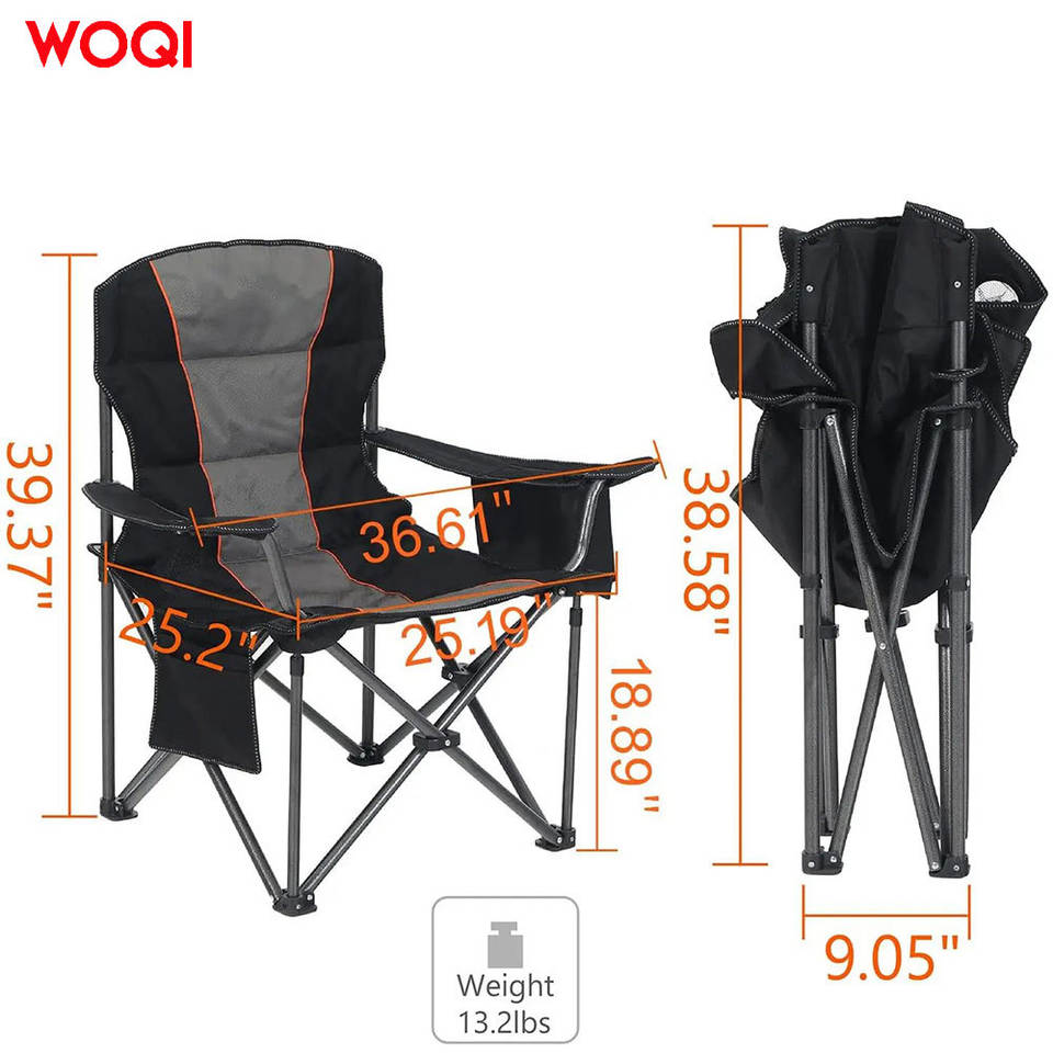 Woqi Outdoor Camping Folding Chair Portable Heavy Duty Padded Beach Chair with Armrests and Storage Pocket
