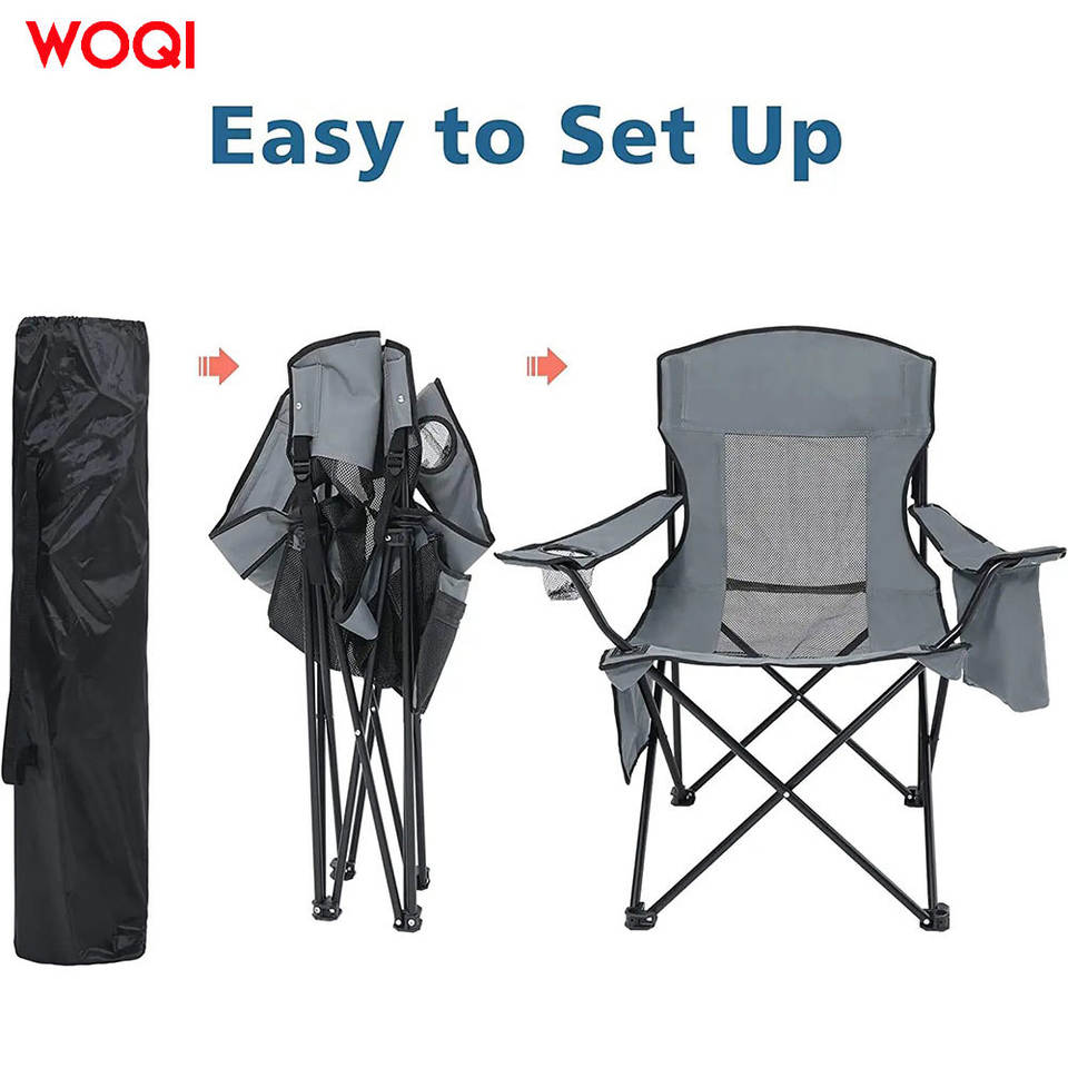 เก้าอี้พับสำหรับตั้งแคมป์กลางแจ้ง Woqi สีเงิน น้ำหนักเบา พกพาสะดวก เหมาะสำหรับตกปลา วาดภาพ และพักผ่อน