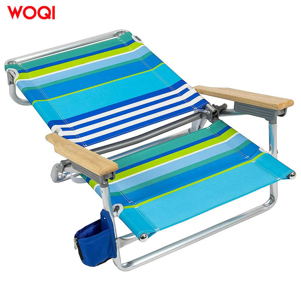 เก้าอี้ชายหาดพับได้ Woqi น้ำหนักเบา โครงอะลูมิเนียม พกพาสะดวก พร้อมที่วางแขนไม้และที่วางแก้ว