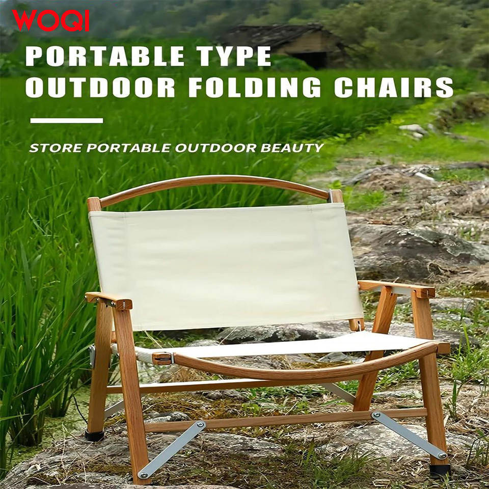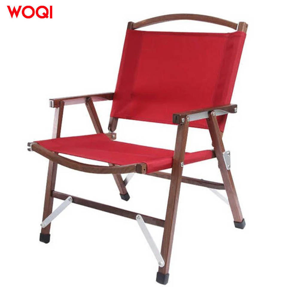 เก้าอี้ชายหาดพับได้ Woqi สีแดง ผ้าใบ โครงไม้ สำหรับสวน ลานบ้าน และการเดินทาง
